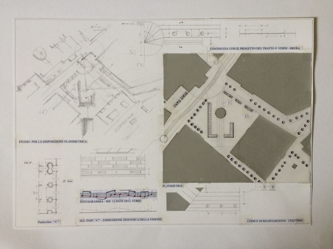 Progetto per concorso internazionale per la riqualificazione della piazza della Scala. Il tema progettuale vede la riproposizione musicale del Maestro Giuseppe Verdi, in “Va Pensiero” quale esaltazione metaforica della vita: l'acqua