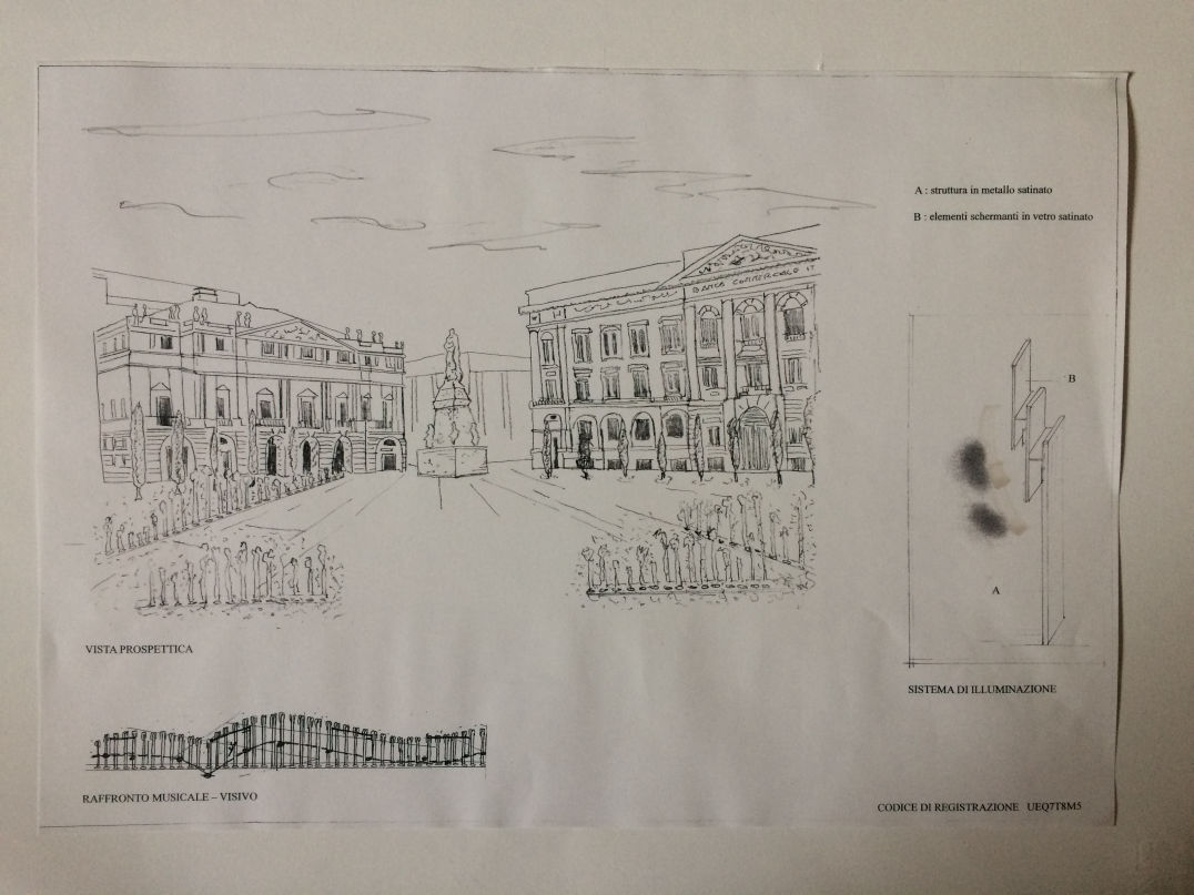 Città di Milano Progetto per concorso internazionale per la riqualificazione della piazza della Scala. Il tema progettuale vede la riproposizione musicale del Maestro Giuseppe Verdi, in “Va Pensiero” quale esaltazione metaforica della vita: l'acqua